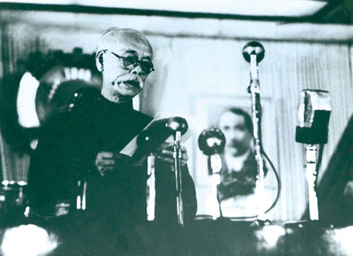 圖為1949年9月24日,農工黨首席代表彭澤民代表農工黨在全國政協(xié)一屆全體會議上發(fā)言