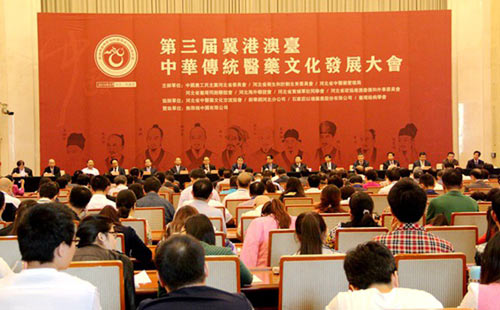 圖為2015年9月21日,農工黨河北省委會等共同主辦第三屆冀港澳臺中華傳統(tǒng)醫(yī)藥文化發(fā)展大會,為推動中醫(yī)藥學術進步、促進四地中醫(yī)藥合作發(fā)展獻計獻策