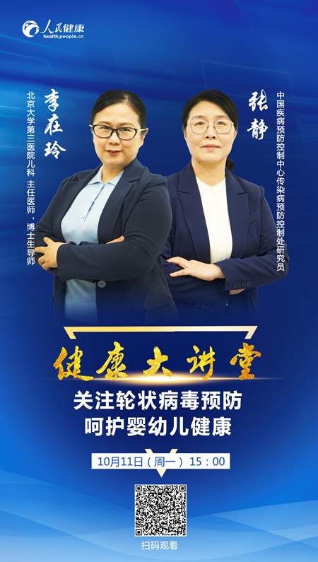 10月11日15:00,中國疾病預(yù)防控制中心傳染病預(yù)防控制處研究員、國家衛(wèi)生健康委員會疾病控制專家委員會委員張靜;北京大學(xué)第三醫(yī)院兒科主任醫(yī)師、博士生導(dǎo)師、中華醫(yī)學(xué)會消化學(xué)分會兒科協(xié)作組副組長、中華醫(yī)學(xué)會兒科分會臨床營養(yǎng)學(xué)組委員李在玲將做客《人民健康會客廳》,為大家分享輪狀病毒流行病學(xué)數(shù)據(jù)與疾病負(fù)擔(dān)、講解輪狀病毒感染的危害和預(yù)防手段,厘清輪狀病毒感染的疾病護(hù)理與預(yù)防誤區(qū),回顧以輪狀病毒疫苗為代表的新生兒疫苗給嬰幼兒健康帶來的狀況改善。